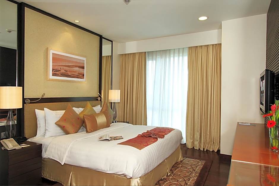 At Somerset Greenways, guests can enjoy a range of amenities including a free outdoor swimming pool, sauna, and kids' club, promising entertainment and relaxation for visitors of all ages. A fitness center, bar, and restaurant cater to guests' dining and leisure needs, while practical features like free Wi-Fi, a 24-hour front desk, and airport shuttle service add convenience to your stay. The apartment's pet-friendly policy and kids' amenities make it a great choice for families, and the beautifully landscaped garden and sun deck provide a serene retreat within the bustling city.